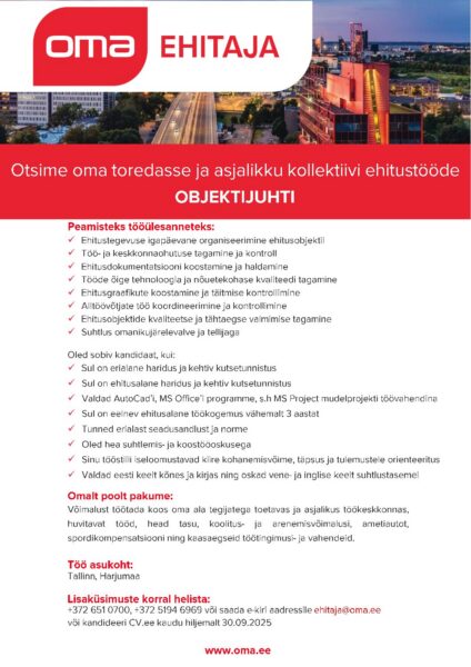 > Oma Ehitaja > Ettevõttest > Tule tööle > Objektijuht > Oma_Ehitaja_objektijuht